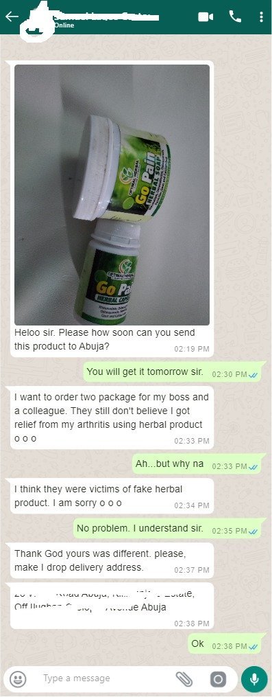 If You Really Want a permanent Solution to the Arthritis, Rheumatism, Waist, Knee , Body pains and more, Do Not Leave Here Without Ordering for This Powerful Herbal Product and Join Thousands of Those it Has Brought back their health.